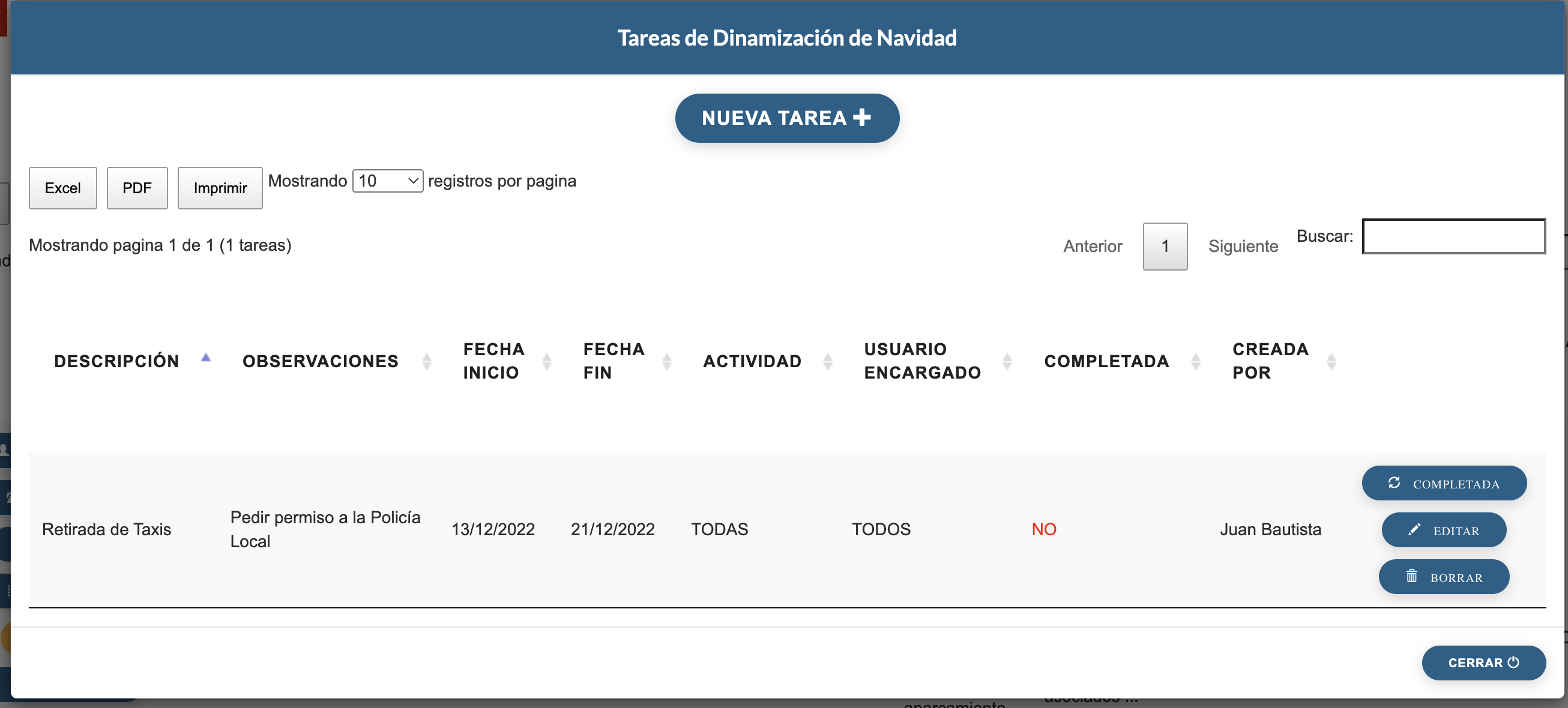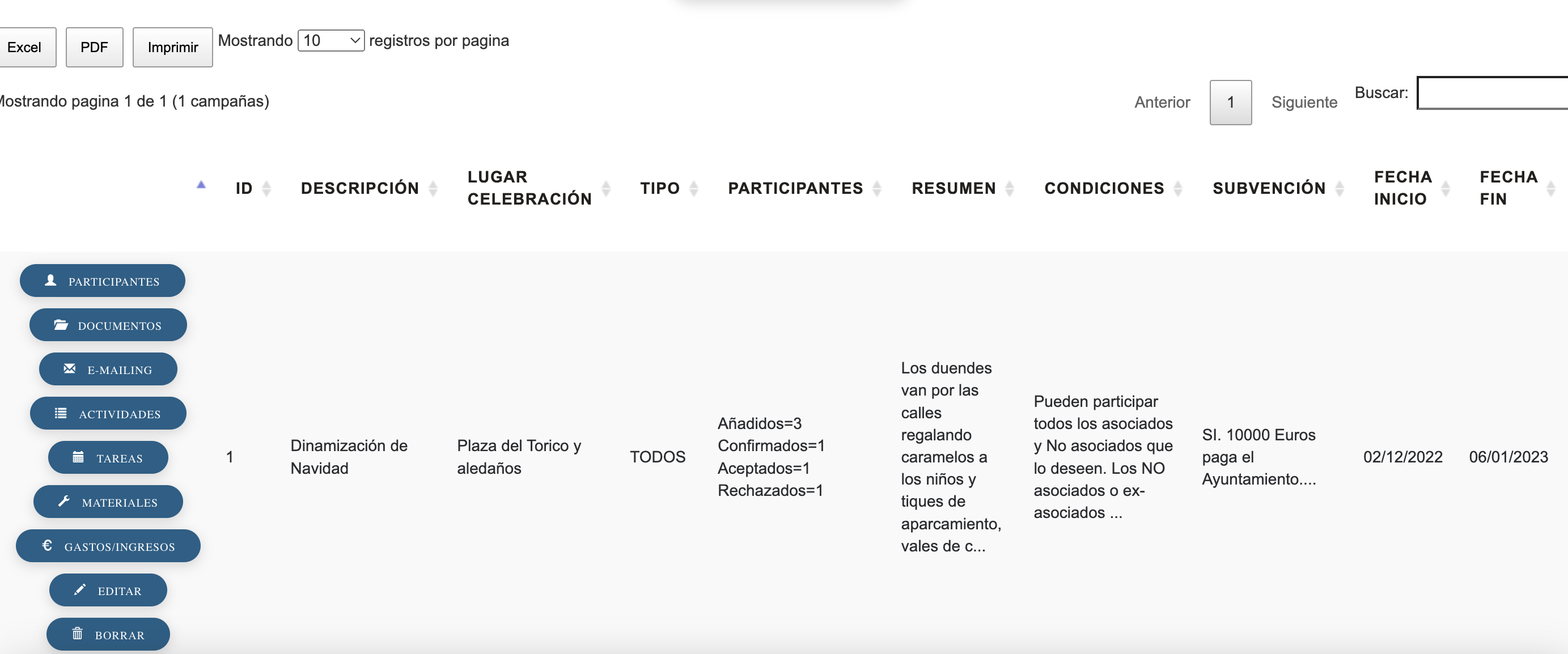 Gestión de las tareas necesarias para llevar a cabo la campaña