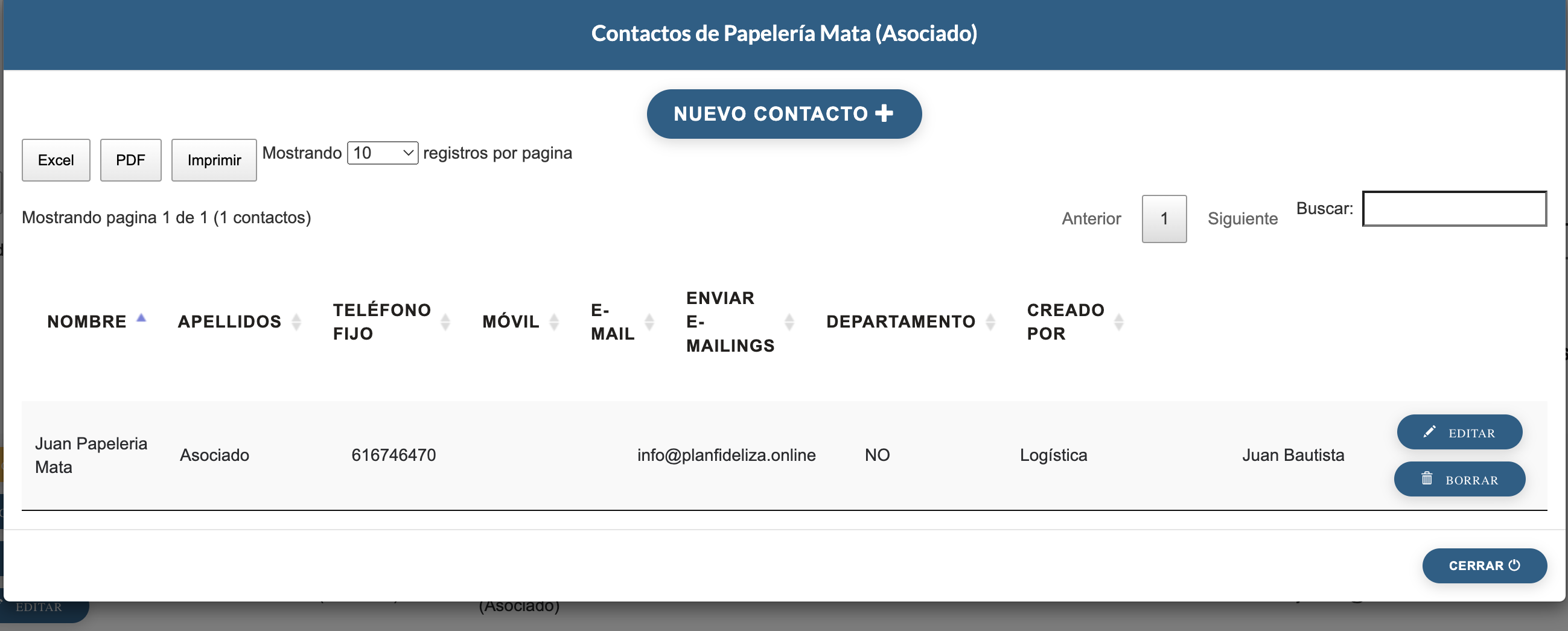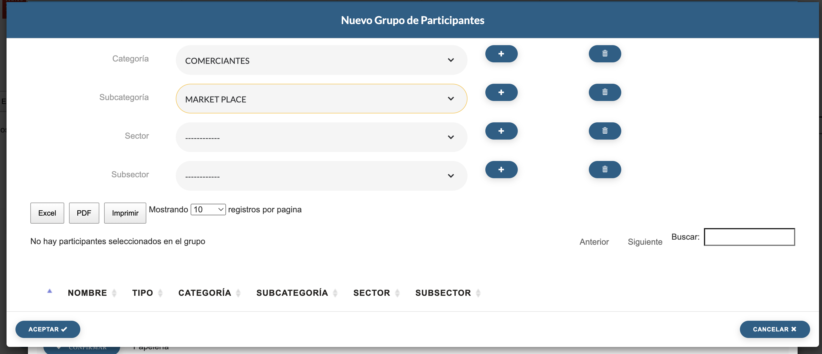 Asignación al asociado de las categorías, sectores y personas de contacto