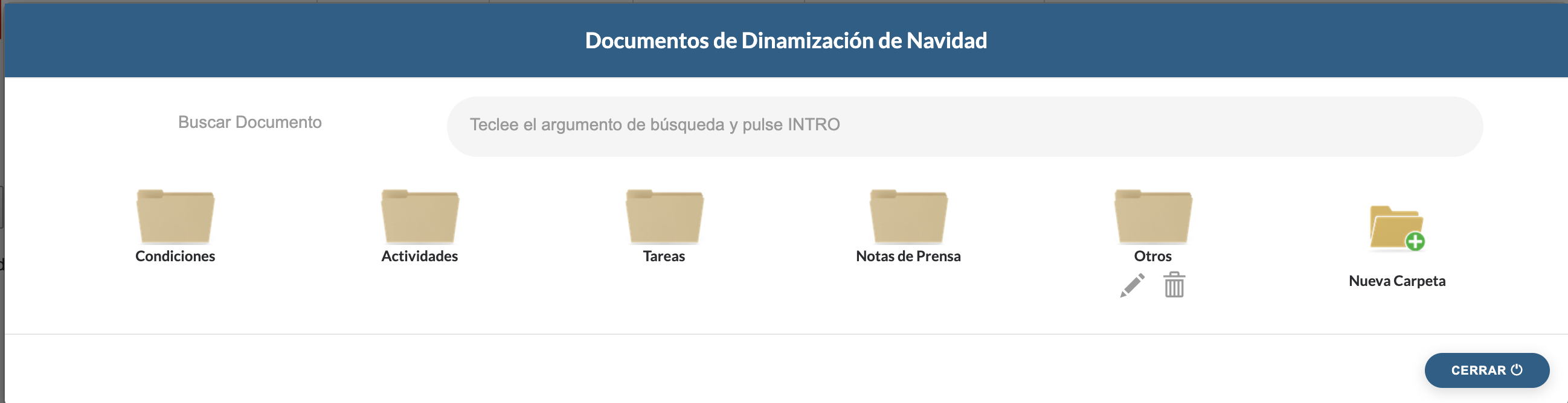 Participantes, Documentos, Tareas, Actividades, Gastos/Ingresos, ...