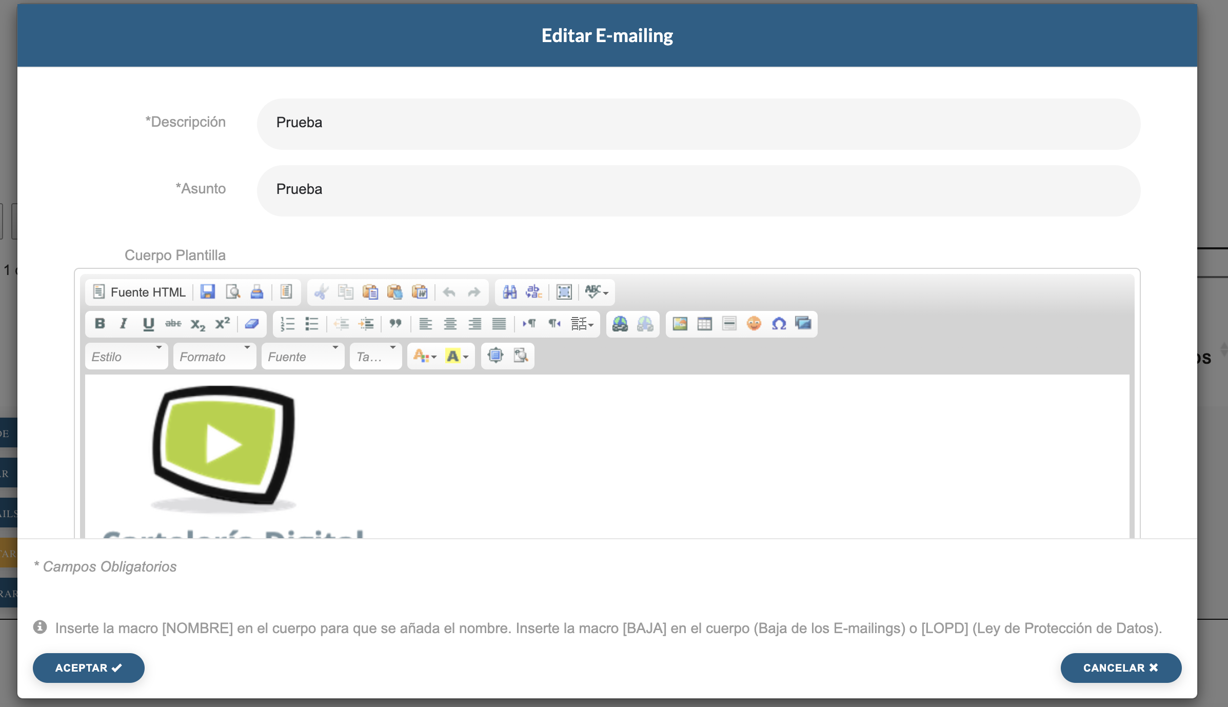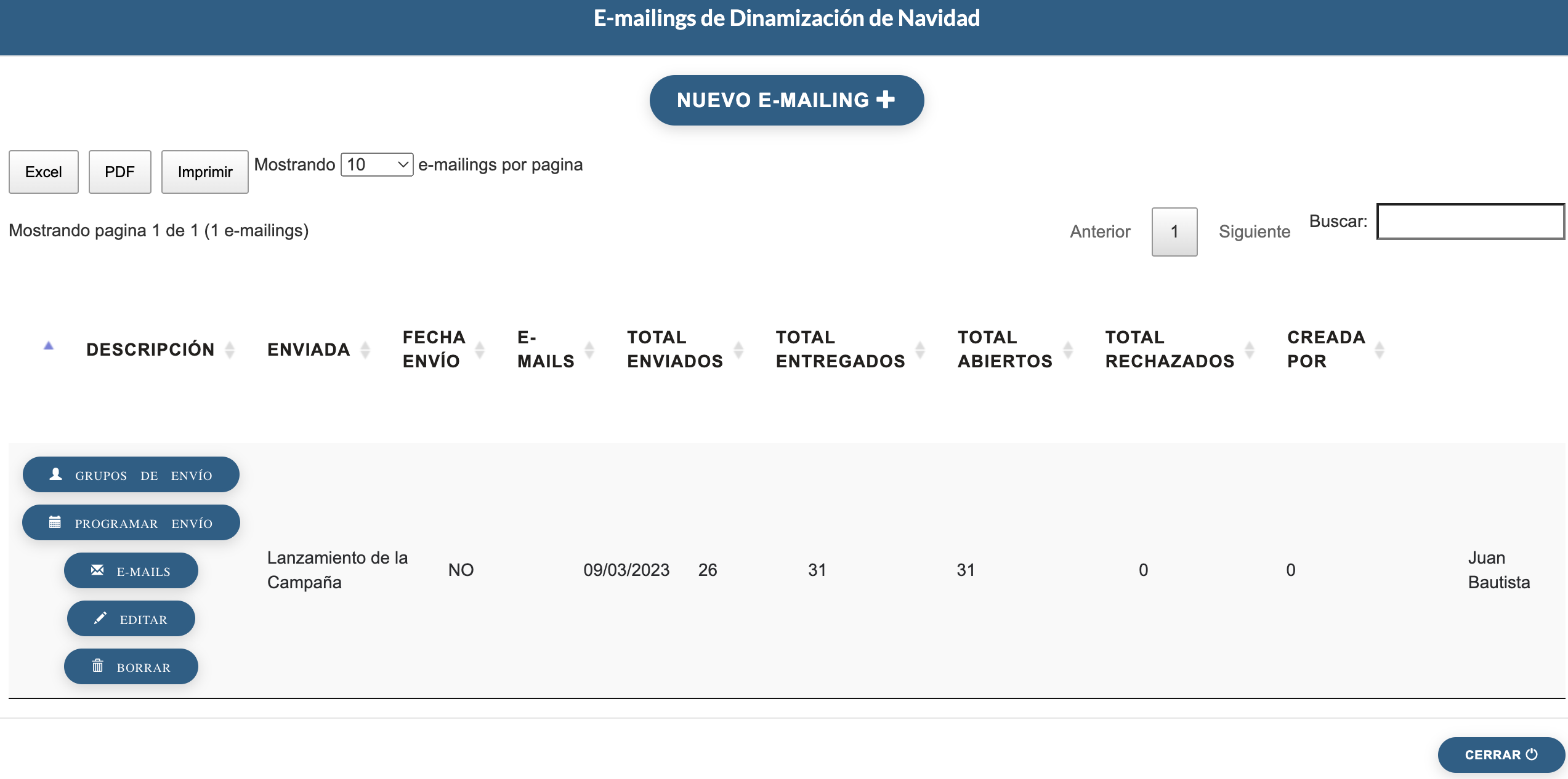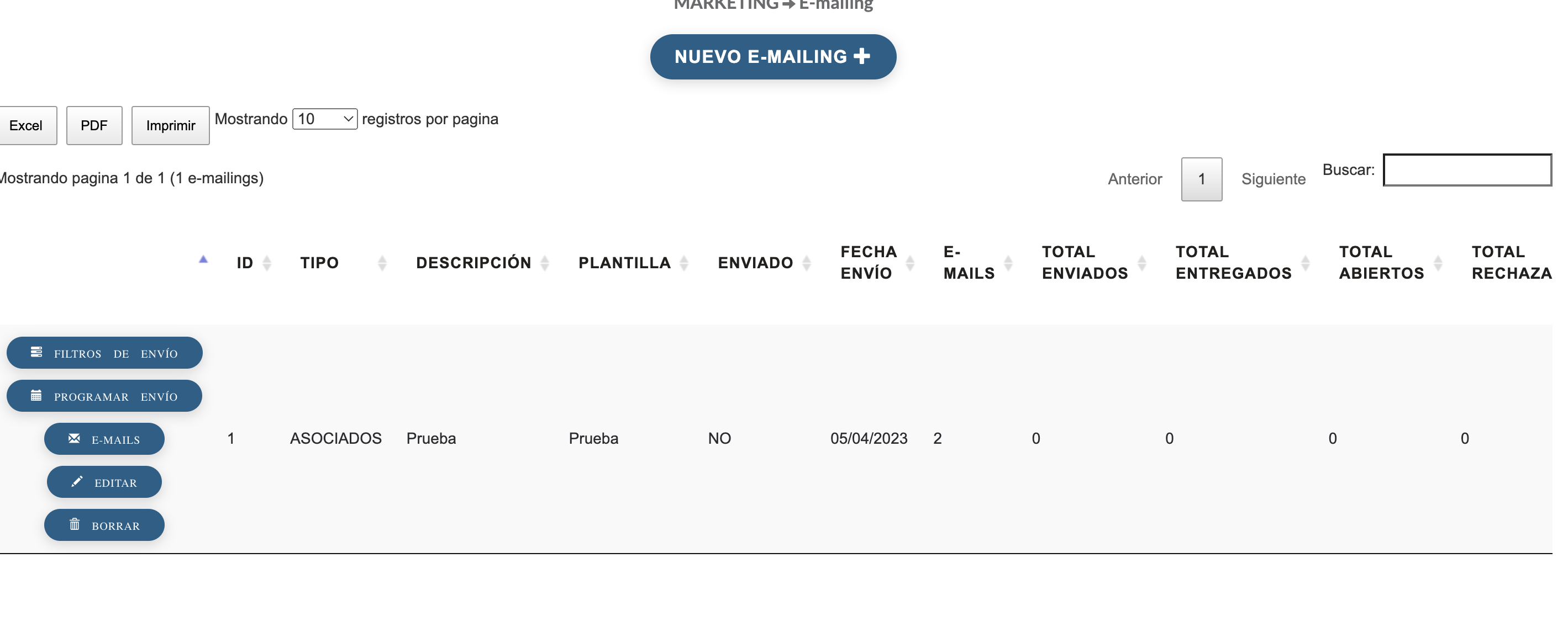 Gestión de E-mailings para enviar a los asociados o clientes de la asociación