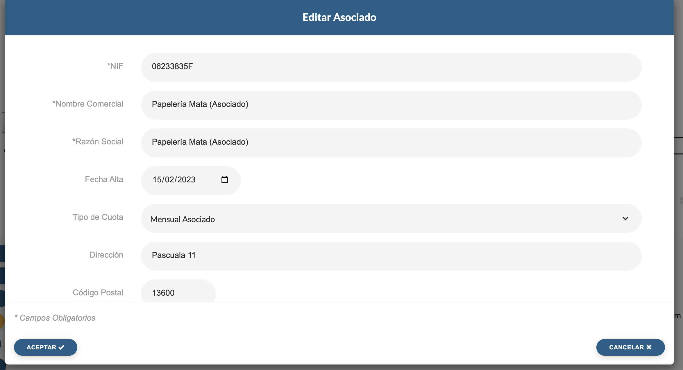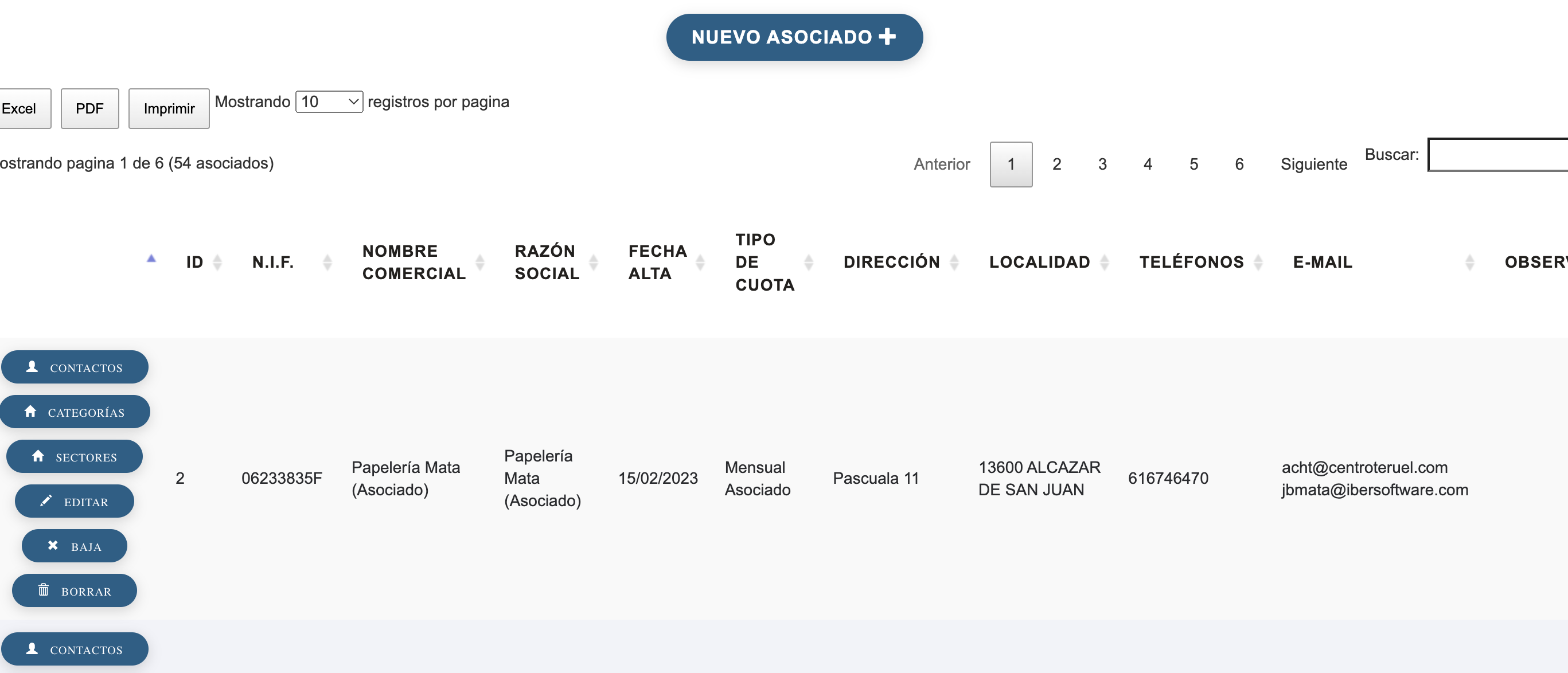 Gestión de todos los tipos de negocio y servicios de la Asociación