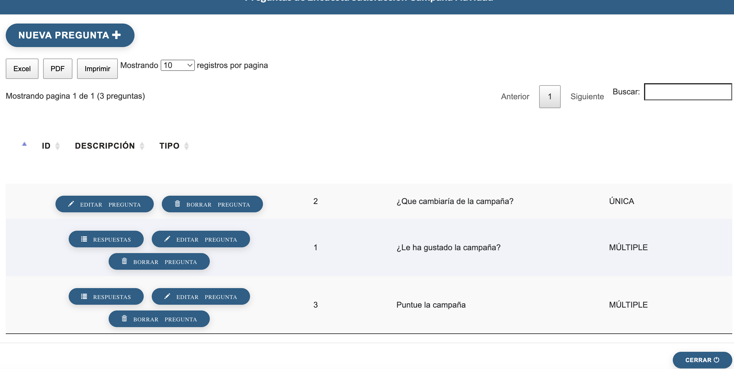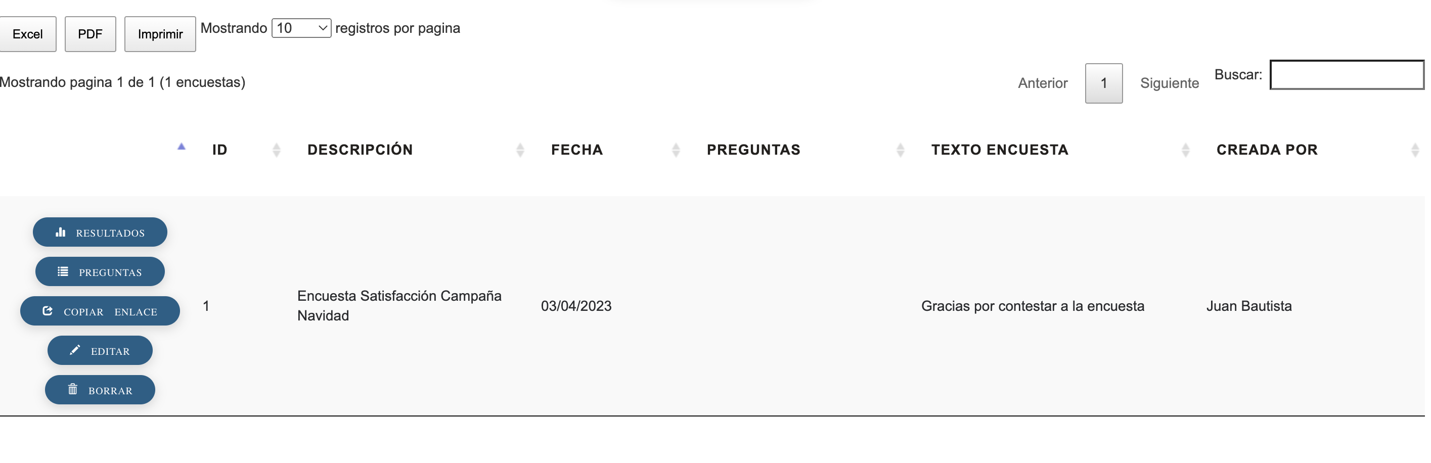 Gestión de encuestas para enviar posteriormente en un e-mailing